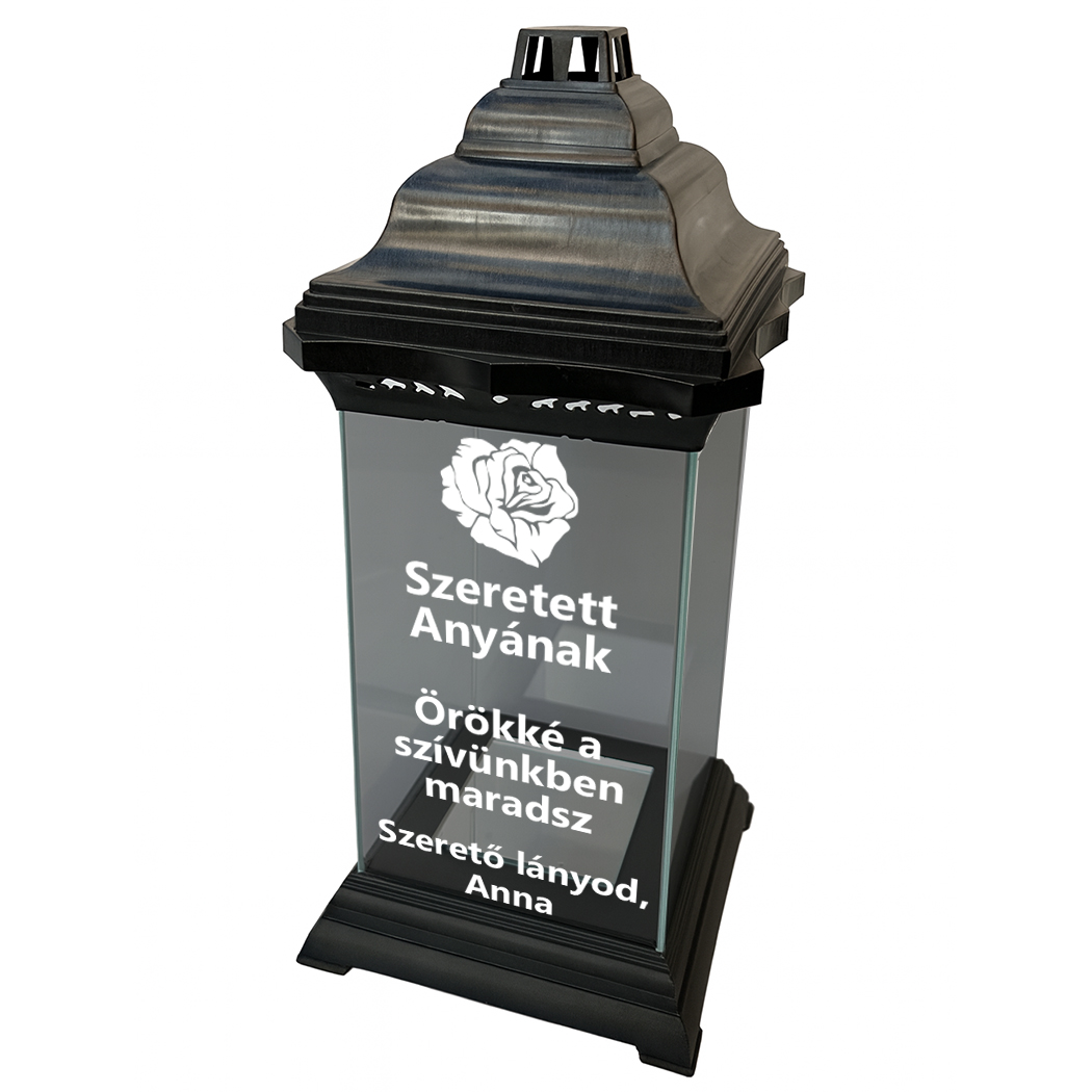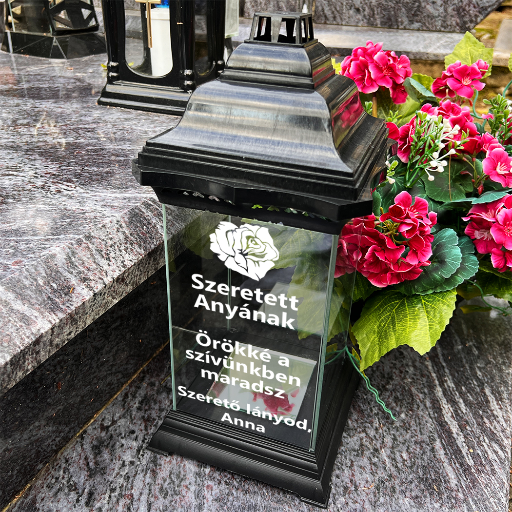 Ez a személyre szabott mécses lehetőséget nyújt arra, hogy egyedi ajánlást, személyes idézetet és aláírást helyezzen el rajta – így teremtve maradandó emléket szeretteiről.